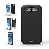 Bahan: Ini snap-on kasus adalah kombinasi besar dari silikon dan polycarbonate, yang diturunkan "kebajikan" dari kedua bahan. Bagian Kasus ini terbuat dari silikon, bahan lembut lembut melindungi back-sisi S3 Galaxy Samsung. The Jack headphone dan port pengisian yang ditutup dengan bantalan silikon, yang mencegah debu masuk ke dalam pelabuhan, dan ketika digunakan, cukup membalik bantalan silikon terbuka. Di atas kasus silikon lapis baja dengan penutup polikarbonat dilepas, dan disemprot dengan lapisan logam-lihat lapisan karet, yang membuat kasus anti-gores, sidik jari-bukti, dan debu-tahan